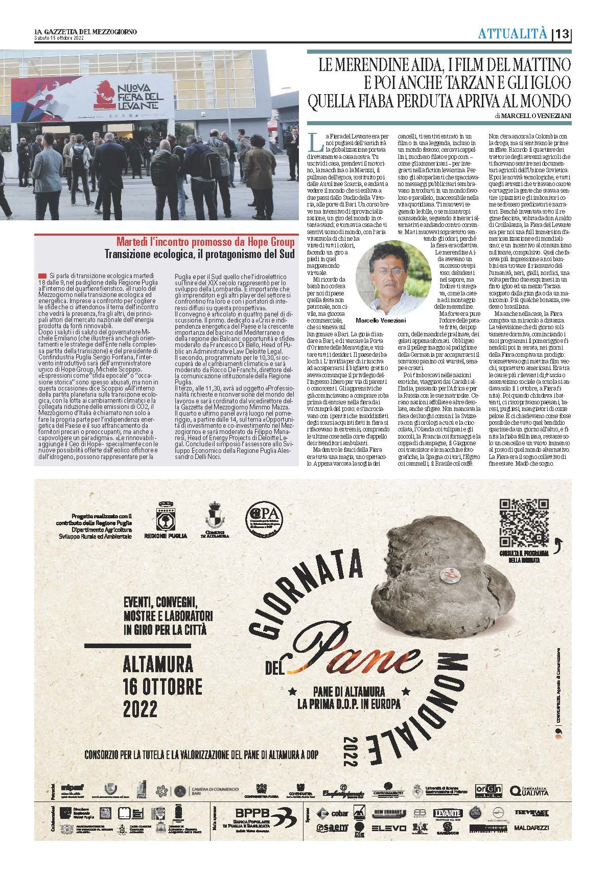 14.12.22 LA GAZZETTA DEL MEZZOGIORNO: Transizione energetica, protocollo d’intesa fra Legambiente Puglia e Hope Group
