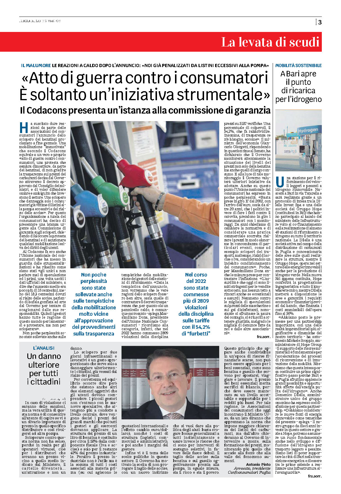 la Repubblica – Bari, arriva una stazione di rifornimento per auto a idrogeno: “Contro il caro-carburanti”